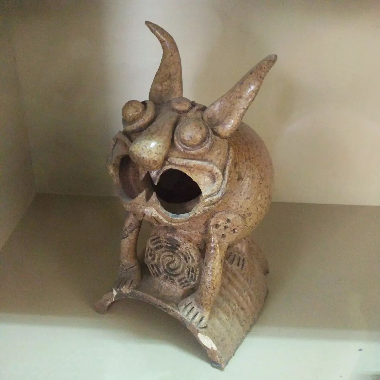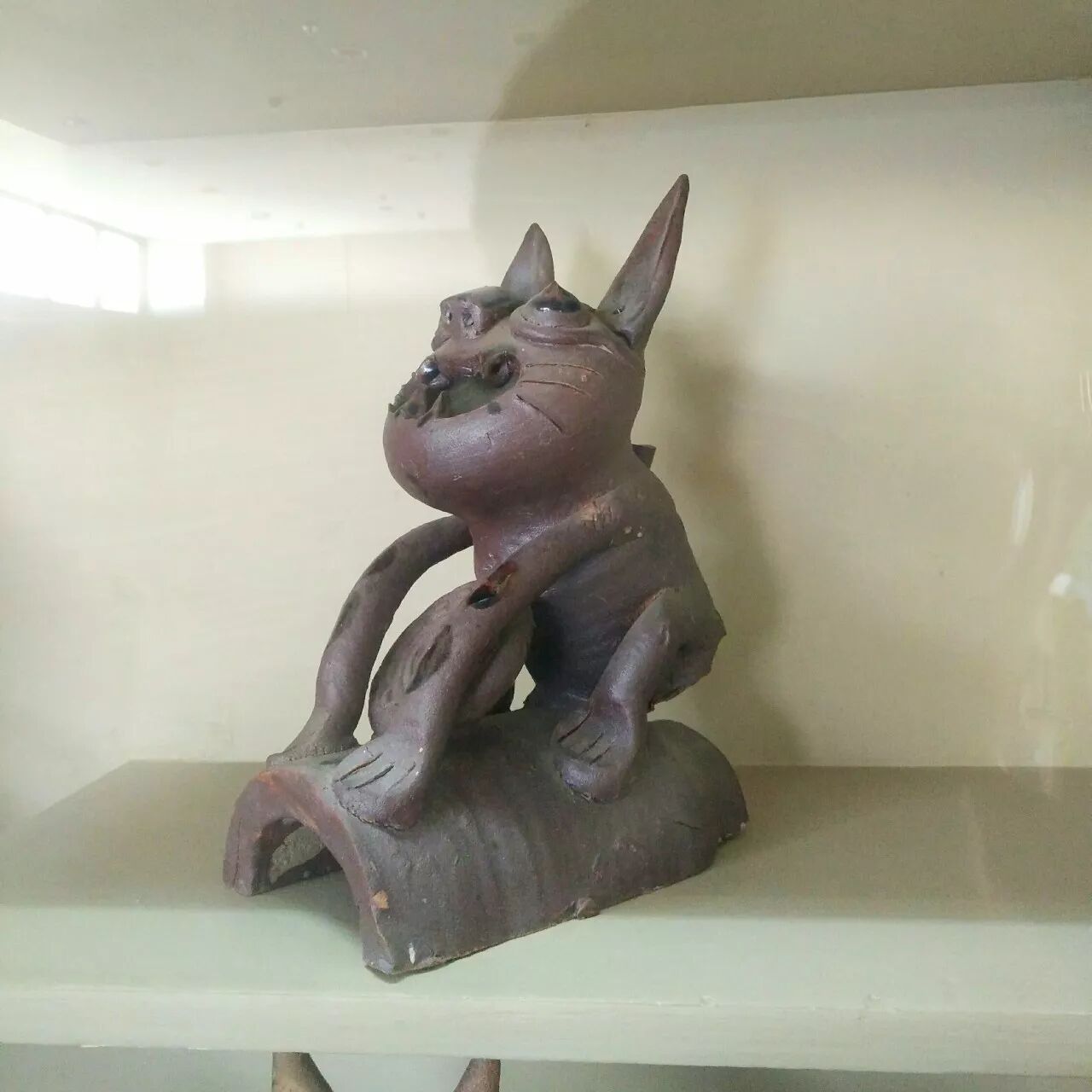 馆内有形态大小各异的十几尊瓦猫,表面棕黄且光滑,比较精美。博物馆里还有一间小屋,贩卖一些书籍和工艺品。当中也有几尊小瓦猫,但做工比较含糊。当时虽觉得小小瓦猫有些特别,却没有动买一尊的念头。