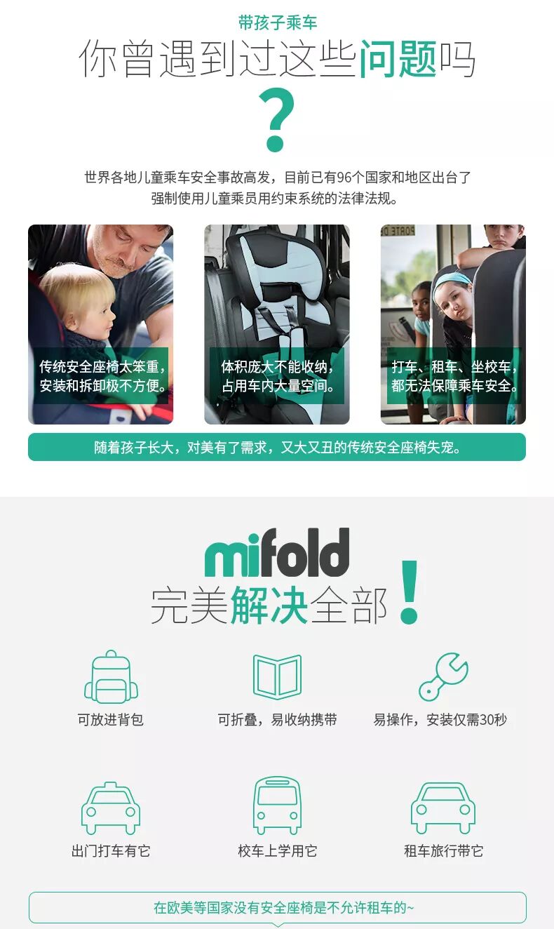 但是传统的儿童安全座椅过于笨重不方便携带,Jon开始思考能否有一款儿童安全座椅足够轻巧,方便携带,让孩子无论在哪辆车上都可以得到安全座椅的保护,因此 mifold 应运而生!