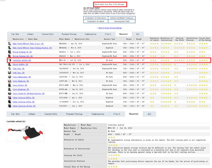 几乎所有大牌安全座椅都要通过他们家的认证,在这个网站里可以查到上百款安全座椅的安全评级,里面的评测结果含金量十足。其中就有mifold▼