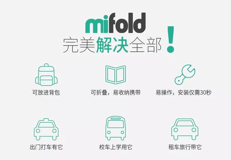 Mifold完美解决了这些问题!它折叠后只有一本书的大小,安装起来30秒都不到,安全性也妥妥的。当我们无法携带或者不方便使用传统安全座椅的时候,它可以随时随地保障孩子的出行安全,也能够有效缓解后排空间。