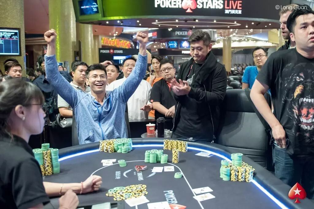 公共牌发出:3♥4♦2♦J♥10♣,来自台湾的Mike Huang获得主赛第八名及313,000港元奖金。