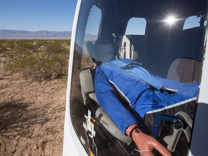 新太空舱的大窗户高约1米,宽约0.7米,乘客拥有在距地面9万多米的高空观赏太空的极佳视野。火箭上还搭载了一个人体模型“天行者”(Skywalker),他被绑在船员舱的座椅上,工程师主要想用它来检测零重力飞行和舱体硬着陆的效果。乔治·华盛顿大学空间政策专家约翰·罗格斯说:“蓝色起源的太空旅行项目有可能在2018年年底开始。”