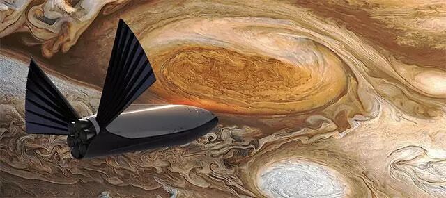 SpaceX“星际运输系统”中的飞船将不仅仅用在火星上,这是飞船在木星轨道上飞行的艺术效果图