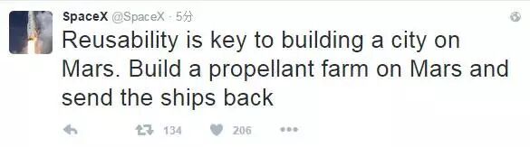 SpaceX官方社交账号在演讲开始后发布的状态:如果前往火星的票价高达10亿美元/人,是无法创建一个自给自足文明的