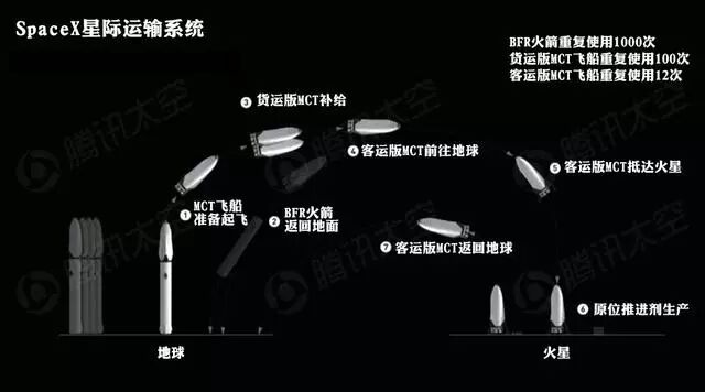 SpaceX认为火箭与飞船的可重复使用是在火星上建立人类城镇的关键,他们将在火星上建立发射场,并将飞船从火星上发射送回地球。