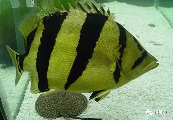 虎鱼属于中下层鱼,性格比较凶猛,和龙鱼混养在一起不会很轻易的被吃掉,虎鱼身上的黑色条纹也给鱼缸增添了一点色彩。