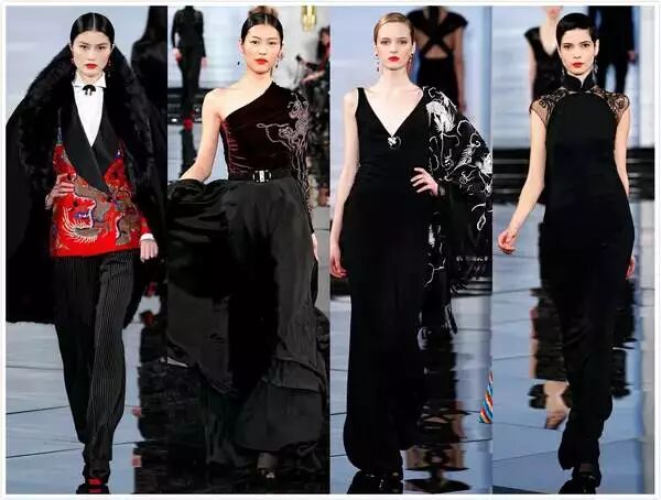 Ralph Lauren 2011秋冬系列设计的灵感来源于《上海快车》里的那个旧时代上海,设计通过贴身的剪裁展现女性的曲线,并以中国古代服饰的装饰元素和玉饰为点缀,中式立领、龙纹刺绣、旗袍式腰身的剪裁等细节成为时装发布会上的亮点。