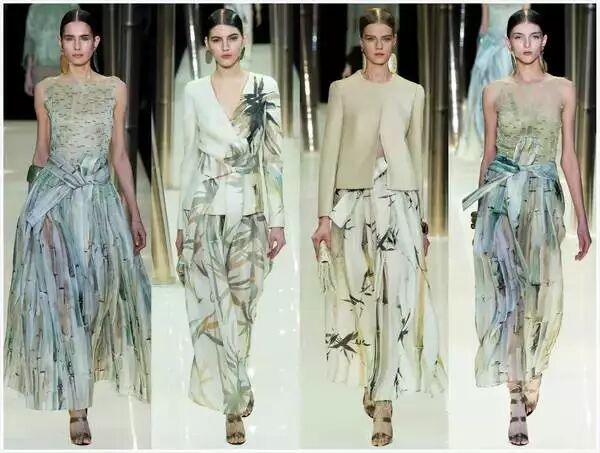 时隔6年Armani 2015春夏高定系列再次大秀东方,强烈的中国风为灵感,竹是核心的元素,丝绸上的图案、薄纱上的钉珠,都模拟中国传统文人画中墨竹的写意笔法来表现,幽静的一季。