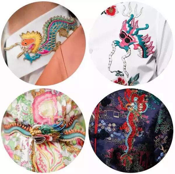 中式的盘扣低调地用到了西装上,本是性感的中国龙在Gucci的手上变成了蠢萌的迷你龙。