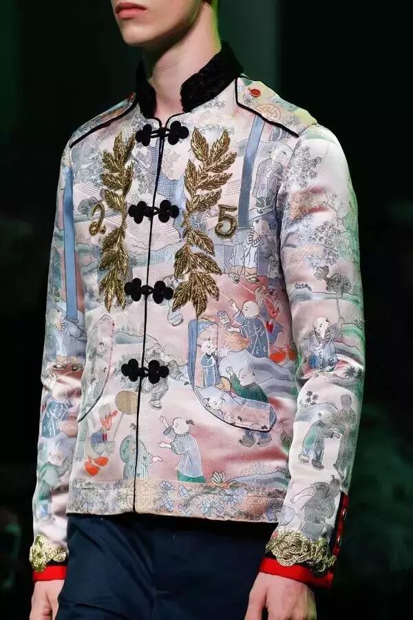 2017春夏男装,设计师Alessandro Michele再一次把中国元素玩的那叫一个溜,你能想到的你不能想到的,这位变态的“历史学者”都设计到了衣服上。