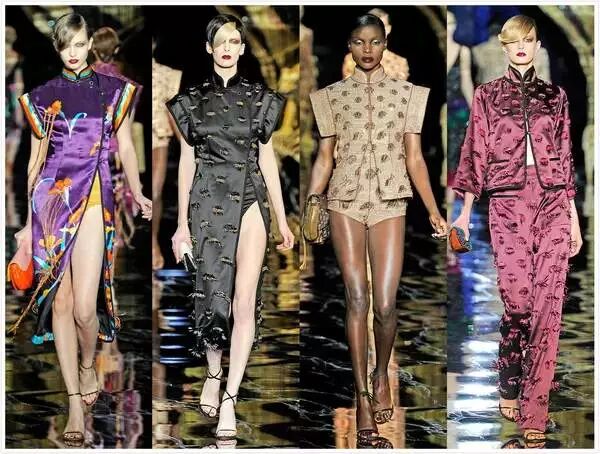 2004年,Tom Ford在自己为YSL Rive Gauche设计的最后一个系列中为模特们穿上了有着旗袍式立领、极具上海上世纪20年代的风格,这也是Tom Ford设计生涯中最经典的一个系列。