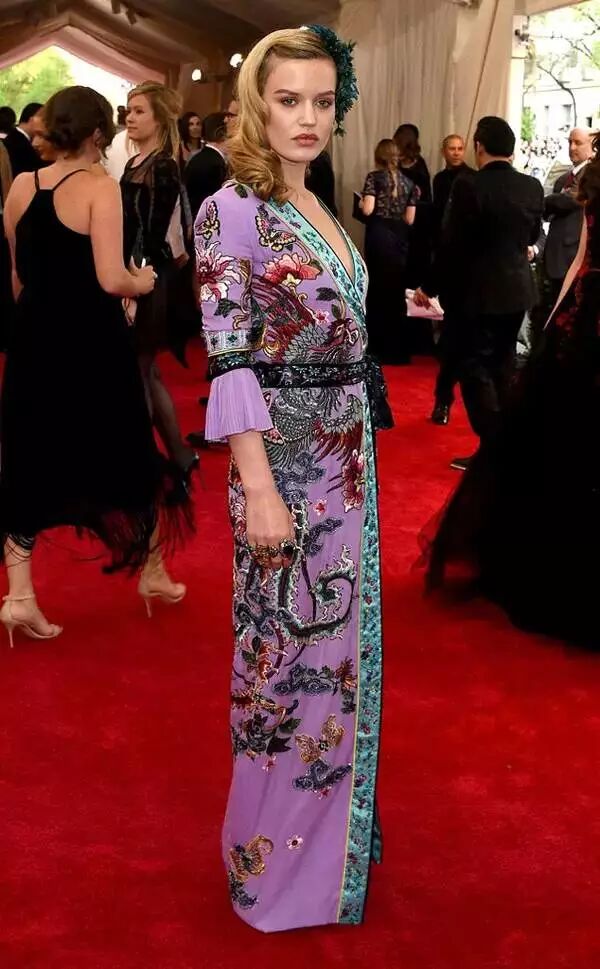 Georgia May Jagger在轰动一时的Met Ball上身穿Gucci中国风刺绣礼服,衣服很中国,表情太国际。
