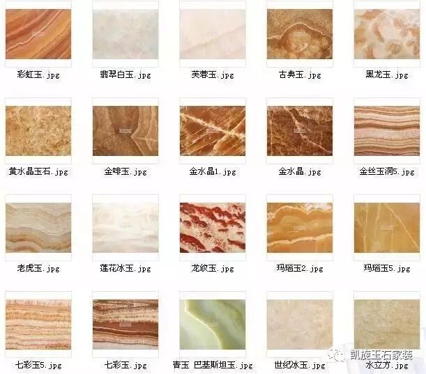 天然玉石,具有透光性。在家装中可做背景墙,台面。也可以在应用在大理石拼花中。在各种酒店、会所等高档场所也是必不可少的装饰材料,具有很好的装饰效果。今天给大家盘点一下常见的玉石品种,原来玉石类石材品种这么多。石材商城 微信id:scsc365