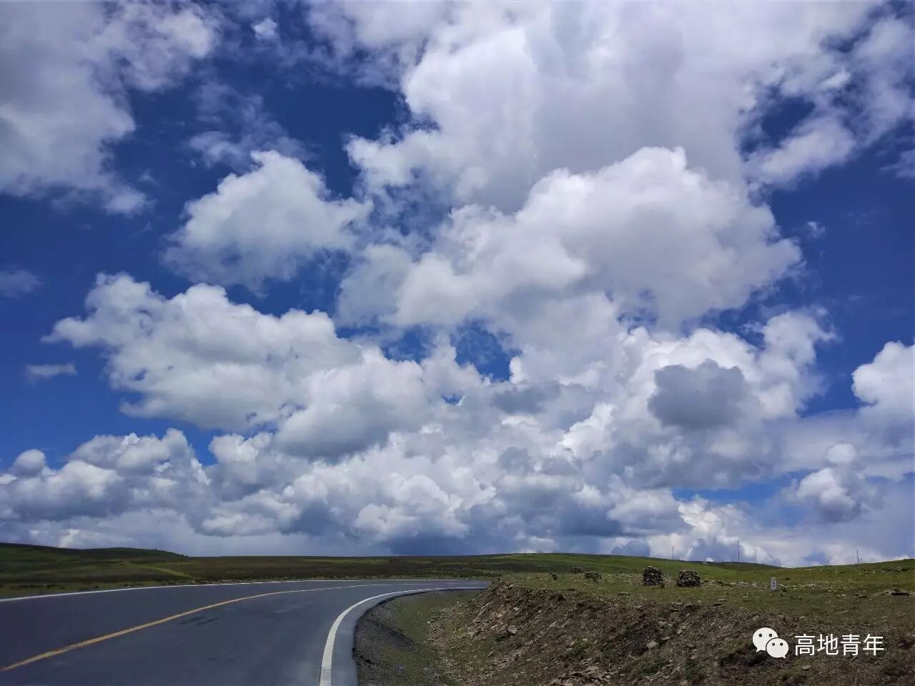 翻越剪子湾之后,整个路边的风景就完全变成了另一种风格。那种很瓷实的小山,就像一个蒸的塌陷的白面馍馍一样,妥妥贴贴的趴在大地上。尤其这里的云彩,云朵的层次,大小,造型,绝对堪称一绝。