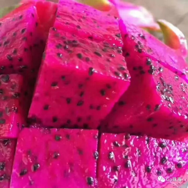 切开看果肉颜色呈现鲜艳的玫瑰红,