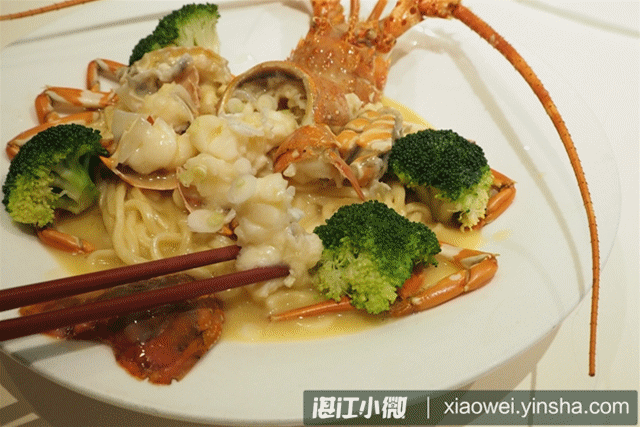 先单独吃一口龙虾肉,感受一下,虾肉的鲜美肉质鲜嫩!