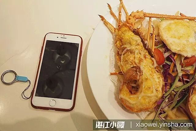 缤纷烤龙虾 龙虾豪放派吃法!整只大龙虾一分为二!虾肉非常有弹性!底下铺着薯条以及蔬菜沙拉。还额外加了一个生煎荷包蛋。撒上秘制椒盐做提味,能一口气吃一整只龙虾!挤上酸酸甜甜的沙拉酱,无论是味道还是口感都非常特别!