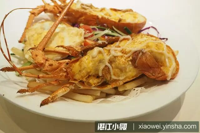 芝士焗龙虾 爱吃芝士的宝宝们在哪里!!!这里有芝士焗龙虾赶紧来!厚厚的芝士铺满整个虾肉!爱吃的芝士的你一定别错过这个口味!蔬菜沙拉铺底,还配上薯条、蔬菜以及香煎荷包蛋!虾肉与芝士完美结合!这个简直就是芝士爱好者的福利大派送啊!