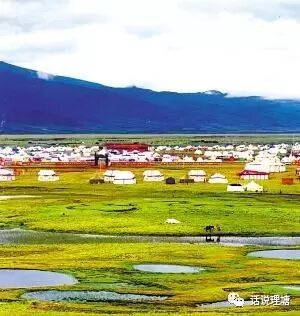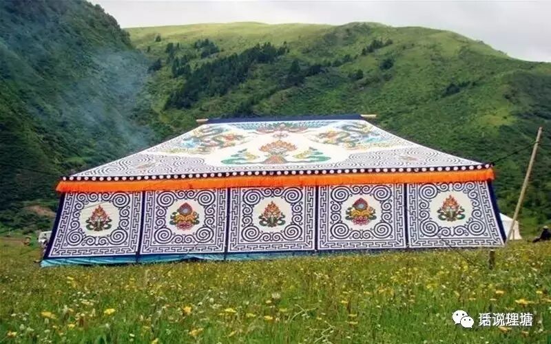 在理塘广袤无垠的毛垭大草原上,一顶顶洁白的帐篷,犹如一颗颗散落的珍珠,与牦牛、骏马、花朵等相映成趣,构成一幅绝妙的高原美景。藏民们根据高原独特的气候条件以及不同的需求,以牛毛、帆布等为材质,再经一双双巧手缝制上具有浓郁民族元素的藏式图案,简单便捷而实用的帐篷就产生了。
