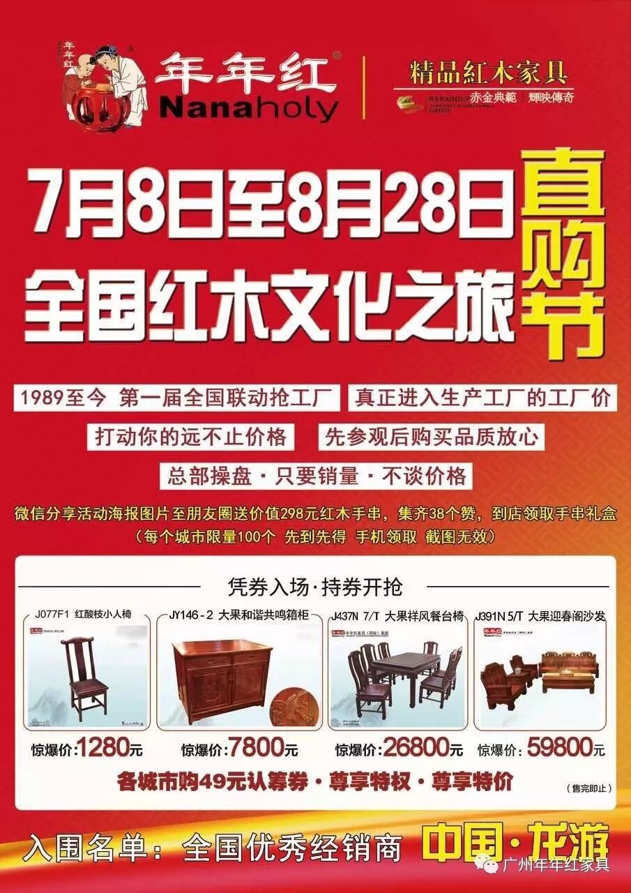 首页 » 文章推荐 » 2017年年红龙天小镇首届全国红木文化之旅 文章推荐 2017年年红龙天小镇首届全国红木文化之旅 2023-04-19 23:50:29 您有想过买家具能旅游,在旅游中买家具吗? 年年红首届全国红木文化之旅将实现您的愿望!只需要一张入场劵,您将享受到旅游,购物,省钱的一站式专项服务。真正进入生产工厂的工厂价,打动您的不止是价格,先参观后购买,品质看的见!!!祥情请到店咨询或来电咨询.地址:广州琶洲吉盛伟邦5011,6007-1年年红专卖店(电话:89089379,87018058)花都博皇家居建材博览中心年年红专卖店(36830689)注:参加团购时间在于2017年7月29日—2017年7月30日. 长春净月区楼盘