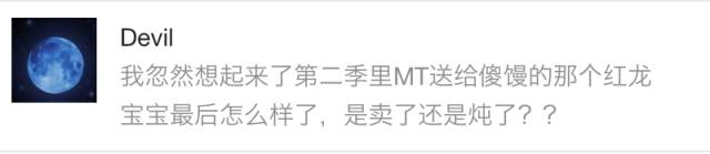 ?:我忽然想起来了第二季里MT送给傻馒的红龙宝宝最后怎么样了,是卖了还是炖了?