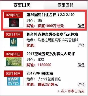 方法二:登入中扑网首页,找到右上方【赛事日历】——【第26届澳门红龙杯】——【直播】(如下图)