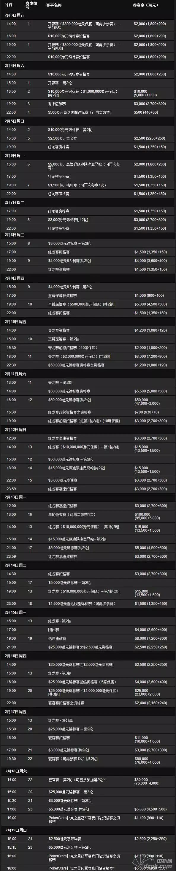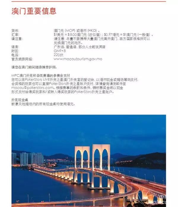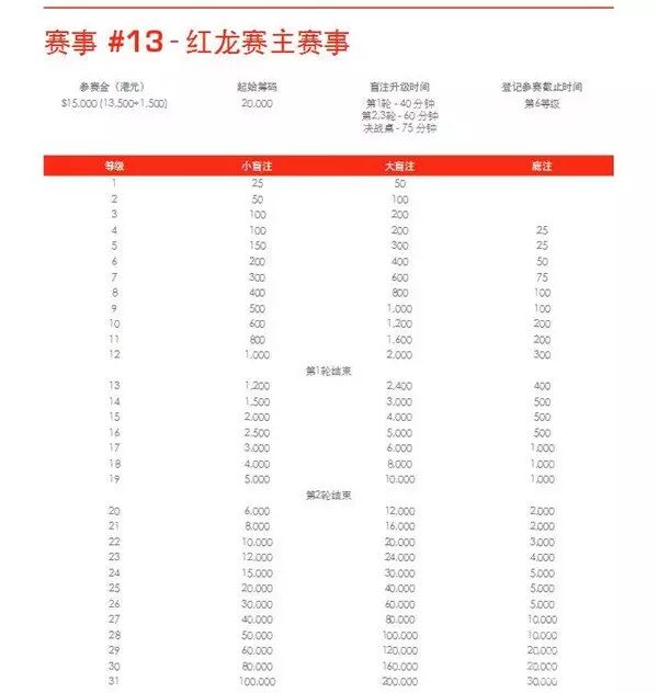 第26届澳门扑克杯(MPC26)红龙主赛事将在2月12日——2月17日于澳门新濠天地扑克之星扑克室火热开战。作为2017亚洲首场大型锦标赛事,自然吸引了来自世界各地玩家们的关注,而一路以来不断创造新记录的红龙杯在今年选择再度“进化”。在比赛结构方面,原本15000的起始筹码改为20000,这就意味着每位选手会持有400个大盲注展开比拼。在参赛奖金方面,主赛买入费用变为$15,000港元并配置了史无前例的一千万港元超高额保底奖池。与此同时,最终冠军除了能够捧起至尊的红龙奖杯之外还将获得价值$100,000港元的2017年ACOP主赛事参赛门票。从这些赛事细节里不难看出,今年的红龙杯主赛一定会更加的激烈与精彩!