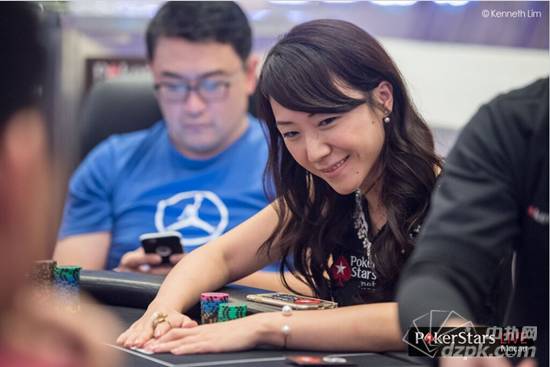 今天比赛一开始就进行得火药味十足。第一个盲注级别,PS明星队成员Celina翻牌前在BTN位加注到150。BB位玩家决定捍卫一下盲注,再加注到400。Celina看了看对手,再一次加注到1050。BB很快跟注,翻牌 4♠7♦8♠,BB位过牌,Celina持续下注1600,BB想了想跟注。转牌:8♣,两家都过牌。河牌:9♥ ,BB过牌,Celina下注2100,BB没想多久就跟注了。Celina亮出:Q♦9♣,对手:10♣10♦收池。凶悍的牌风没能给Celina在今天A组的道路上走得更远,最终Celina遗憾告别了主赛事的比赛。