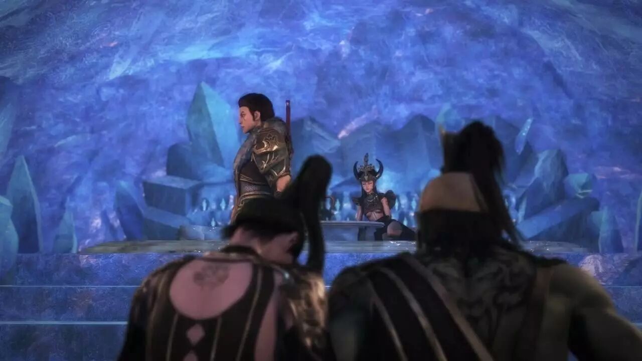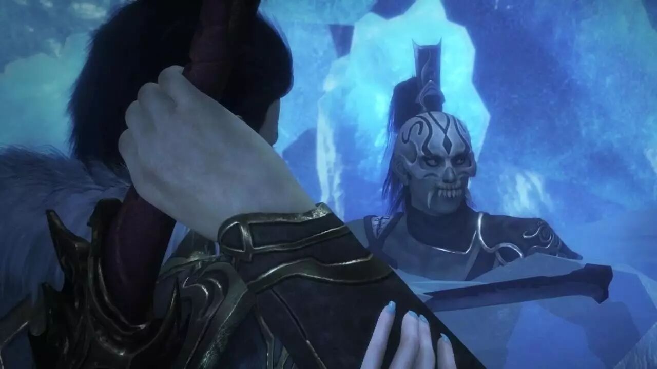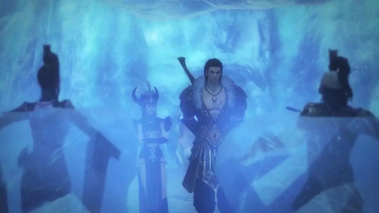 塞外老族冰洞中,完颜龙轻轻摩挲着禁锢描骨仙和画皮鬼的冰面,威胁他们说出幕后指使,奈何二人一副打死不招的强硬架势。