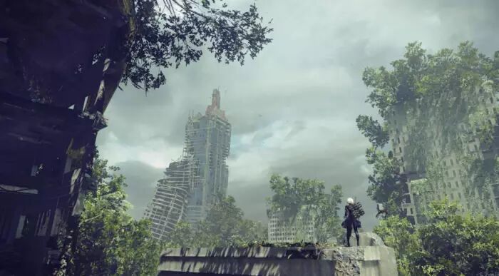 《尼尔:机械纪元》的场景是典型的末世风格,废弃的工厂、森林拔地而起的城市、被黄沙掩盖的人类文明等等,一种苍凉感扑面而来。