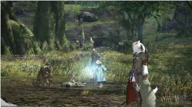 《最终幻想14》中将即时演算CG作为了讲故事非常重要的方式(最右边是晨星的角色)