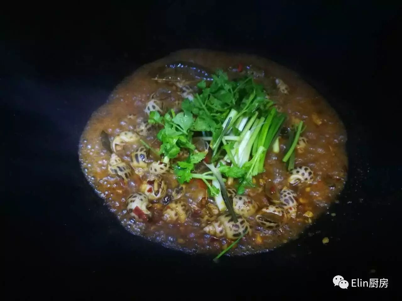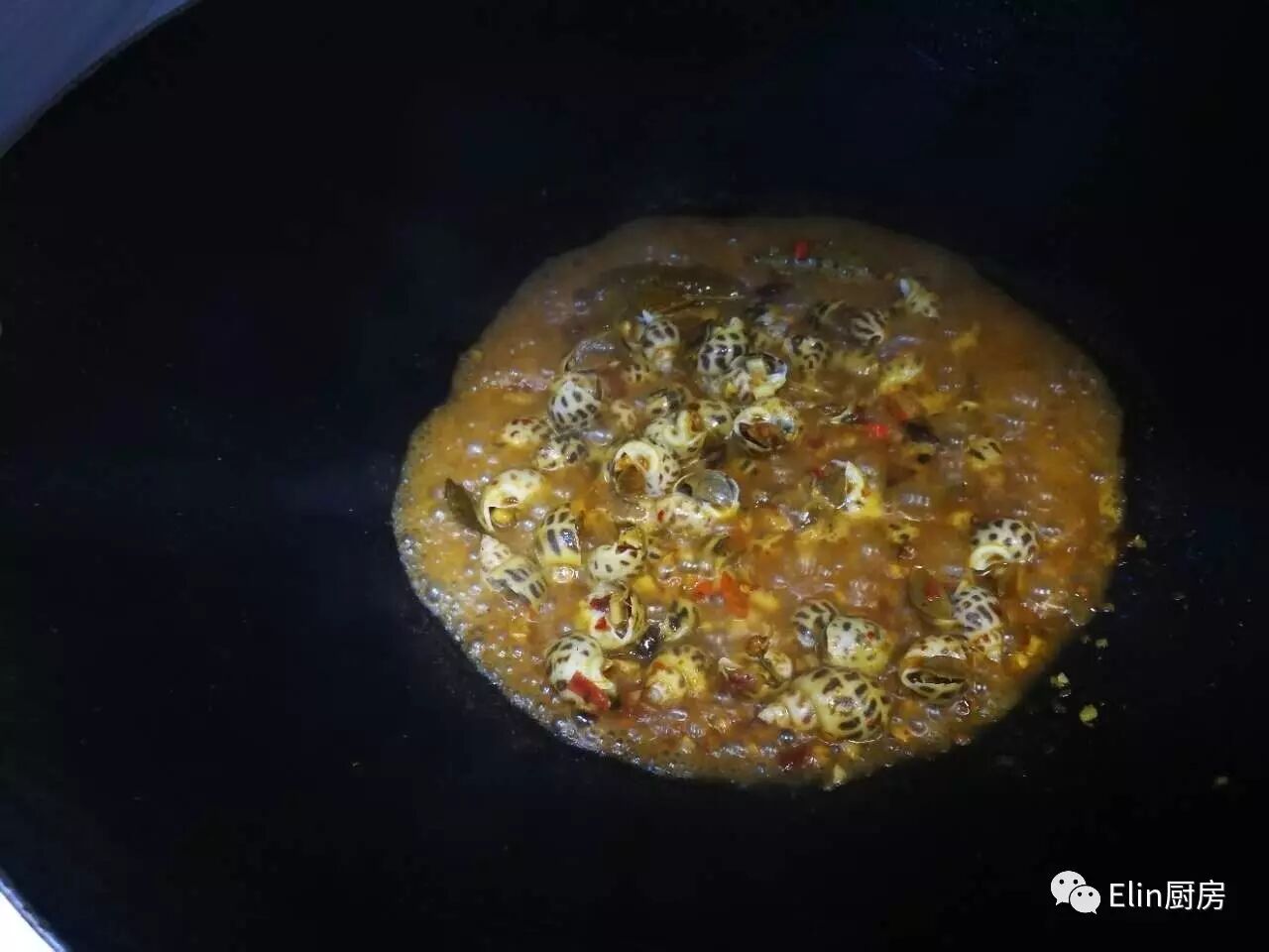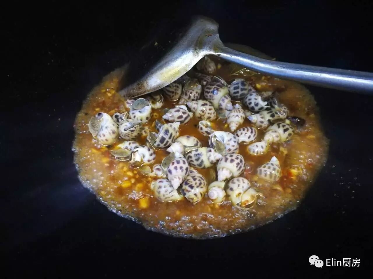 第8步:倒入花螺,加入适量酱油,蚝油,盐调味