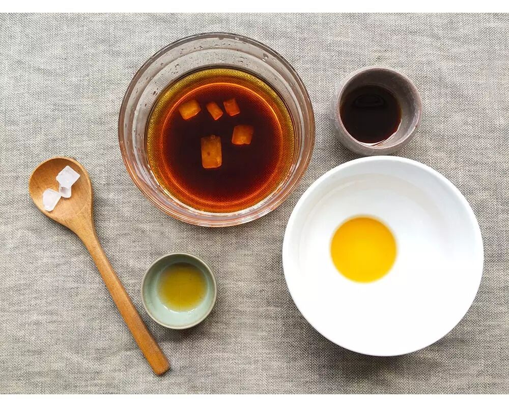在小碗中倒入一些凉水,将一杯米酒和半杯花雕混合,加入适量生抽,鱼露和冰糖搅拌均匀,备用。