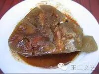鲎粿成品 ,还要再放入油锅里煮,油必须淹没鲎粿,煮至粿皮发脆就可以捞上来了。放在盘子里,用剪刀剪碎,浇上沙茶浆就吃啦!外脆内嫩,风味独特。如果不喜欢沙茶浆也可以粘酱油,不过大多数人都选沙茶酱的。喜欢吃辣的朋友可以再加入辣椒酱。