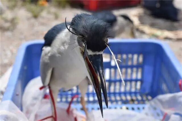【5】图为被关在篮子中的夜鹭。 李昱颖 摄