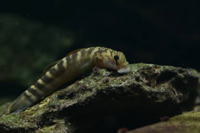 “这是完全另一种画风的一种虾虎,叫瓢鳍虾虎,也叫日本秃头鲨,在台湾地区非常有名。当地渔民也会抓虾虎吃,比如边上弄一个鱼篓,里面弄一个水管子,水管子从崖壁上流很细的水,虾虎逆着水流走,然后掉在了鱼篓里。它非常温和,光吃藻,不吃虫子。”