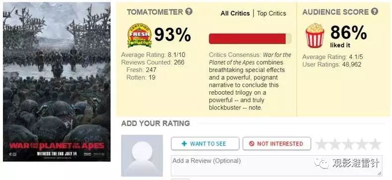 另外《猩球崛起》系列也迎来终章,从北美口碑来看,又是一部不得不看的佳片。