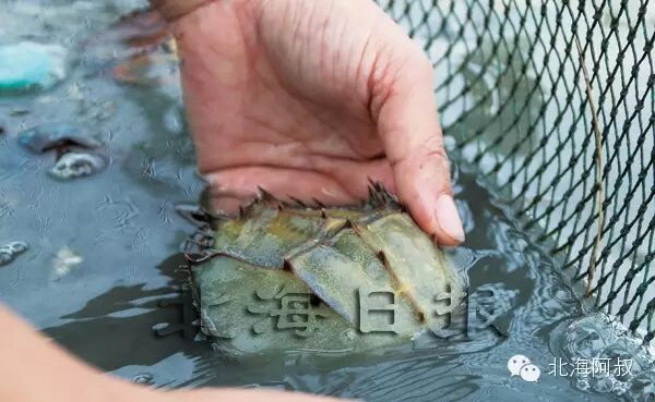 鲎,一种比恐龙还要古老的活化石家族,现存4种:美洲鲎、中国鲎(东方鲎)、南方鲎、圆尾鲎。北海的鲎有中国鲎和圆尾鲎2种,北海人日常接触最多的是中国鲎。