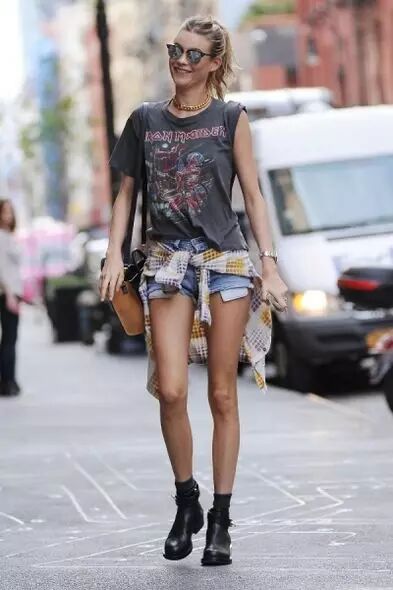 身高:約180cm仗著身高優勢,有一雙大長腿的名模Behati Prinsloo,其實不管要怎麼穿牛仔短褲基本上根本不會有問題,不過身為搖滾天團Maroon 5主音 Adam Levine亞當李維的妻子,Behati Prinsloo在打扮也多了點搖滾風範,簡單的Rocker圖案T裇搭上牛仔短褲,最後腰間紮起襯衫,街頭個性展露無遺。![]()
