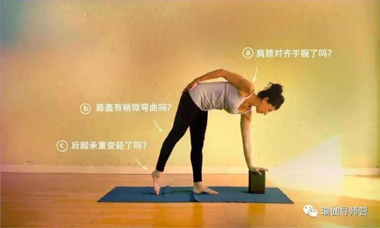 用下面的手和前面的腿去承重,保持平衡,后腿轻盈。