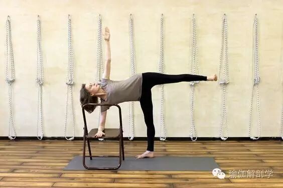 正文半月式(Ardha Chandrasana),这个体式可以伸展我们背部的肌肉,非常适合上班族或久坐人士。