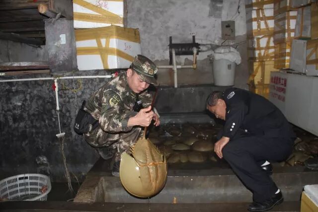地角所边防派出所民警查处东方鲎 (张勇 摄)
