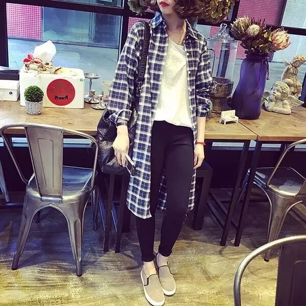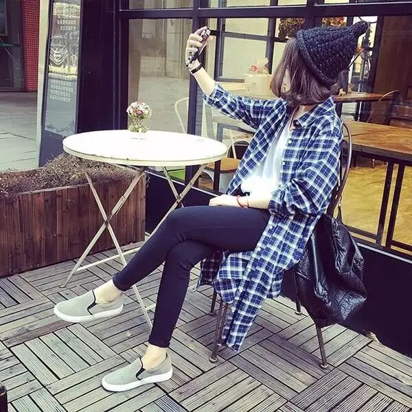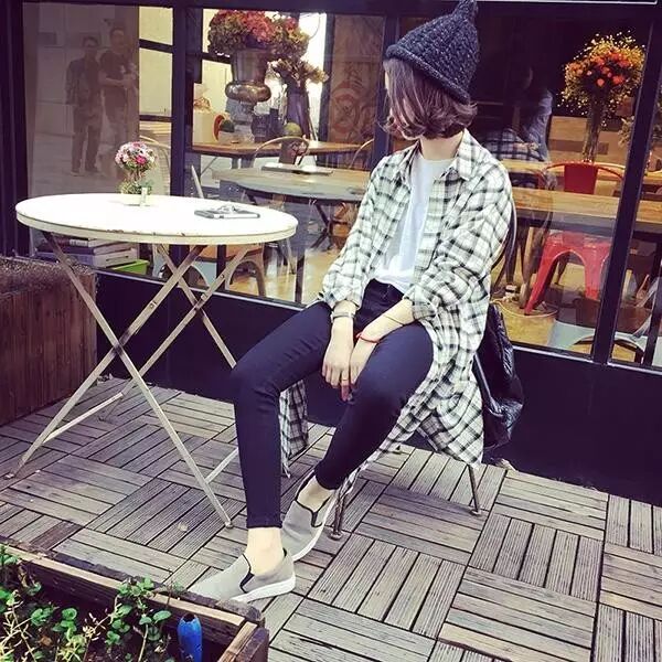 ↑只需要搭配简单的紧身裤,再加上格子外套,轻易穿出韩范儿十足呢!