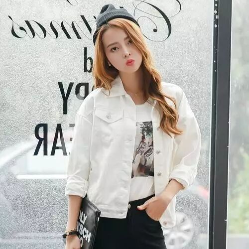 ↑模特儿分别穿出了三种不一样颜色的牛仔外套——深牛仔色,浅牛仔色以及白色。