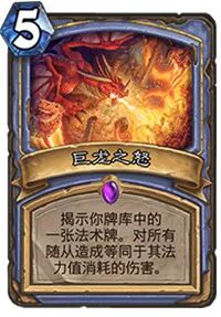 巨龙之怒:虽然在这套牌中有可能只全场打2,不像龙妈法那般可以稳定造成更强力的AOE,不过法师6费以下的法术,除了3费的药水,也没有其他更好的AOE卡牌了,这卡也往往能够创造奇迹,毕竟全场打二的概率很小,只要做到全场打三,应对快攻大部分情况下都足够了。