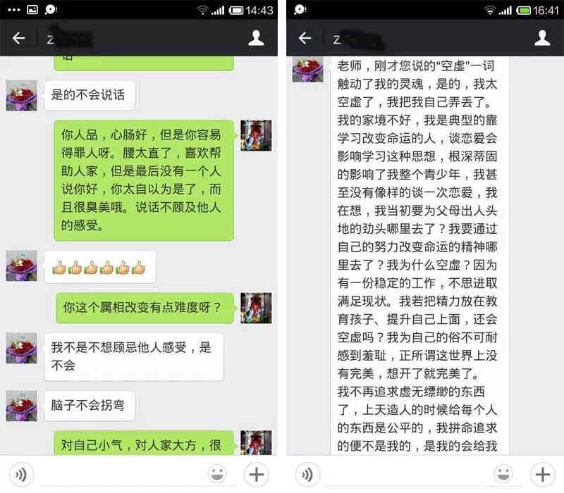 1、 上海的李松说:“当我面对着和女友吵架、生活中的各种烦恼交杂在一起的时候,站在18楼的楼顶都想跳下去,在等地铁来的时候都想破窗而出,心情极度压抑,经朋友介绍上章老师的课,学习不到两个小时就解决了我内心的所有负面情绪,让我瞬间心情大好!章老师是心理学高手!!