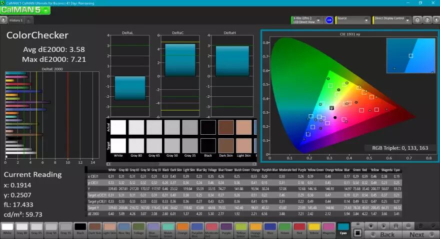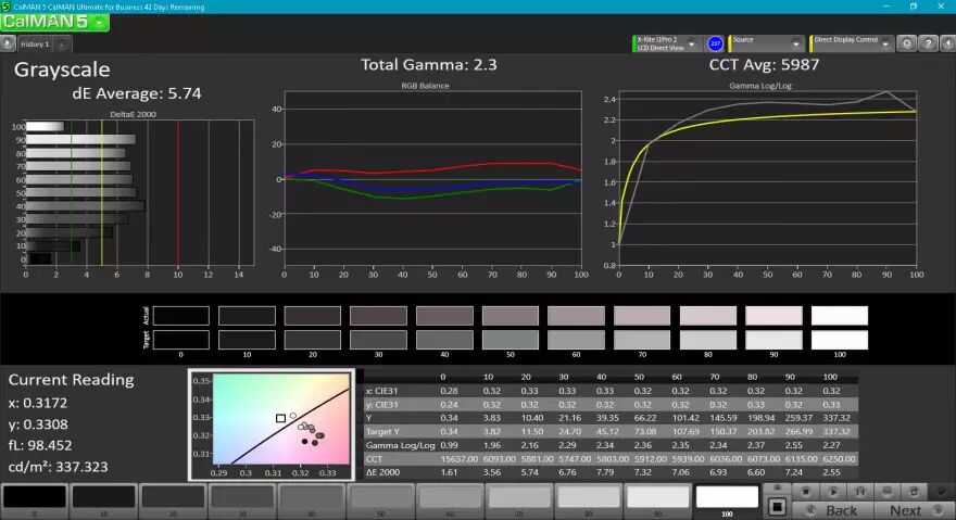 出厂调校的色温有些偏暖,可以自行调校来提升其颜色和灰阶。在户外的可视性较差,由于分辨率的原因,字体过小,对比度又不够高,IPS 屏幕在可视角度上表现还算不错,但是亮度不足够高来应对阳光以及较高的环境灯光,但假如是在室内的话,可视性还是没什么问题的。