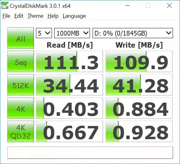 这部笔记本支持 NVMe SSD,不过我们这台配备的是两块1TB 闪迪 X400 SD8SN8U1T001122 SATA M.2 SSD RAID 0 磁盘阵列,速度稍微慢了一些,但价格更加适中,普通读取速度大约在900MB/s 以上,跟三星 SM951的1600MB/s 相比,要弱很多。