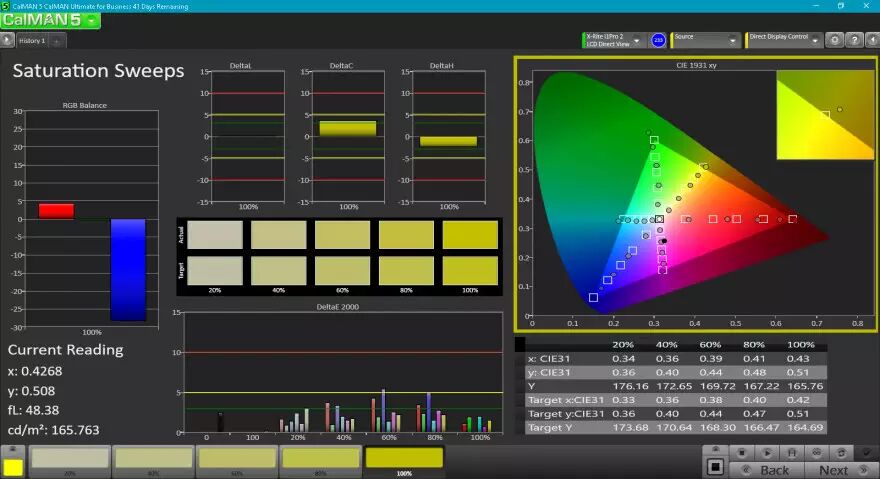 那么 4K UHD IPS 屏幕跟 FHD 相比,有什么分别呢?除了像素密度之外,这块4K UHD 显示屏在对比度上要比1080P 更低一些,并且响应速度也更慢,不过在色准上表现则要比1080P 更好,我们发现 GT73VR 所采用的友达 B173ZAN01.0屏幕面板同样应用在了 GT80S 以及 Sky DLX7 和 XMG U727上,亮度方面,4K 和1080P 表现几乎一致。