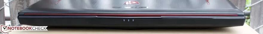 GT73VR 6RF 的机身做工同样非常出色,不同材质拼接的十分自然,不会有缝隙出现,机身背面的散热孔分布在了两侧,不过机身底部算是一个较为脆弱的地方,因为底部采用了大面积的镂空设计,而且主要的元器件都位于此处,万一从高处跌落很容易发生损伤。